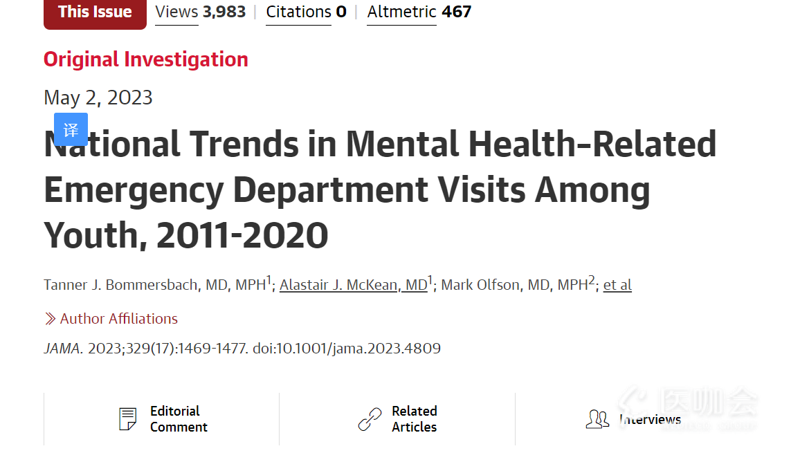 JAMA:2011-2020年青少年心理健康相关急诊就诊的全国趋势