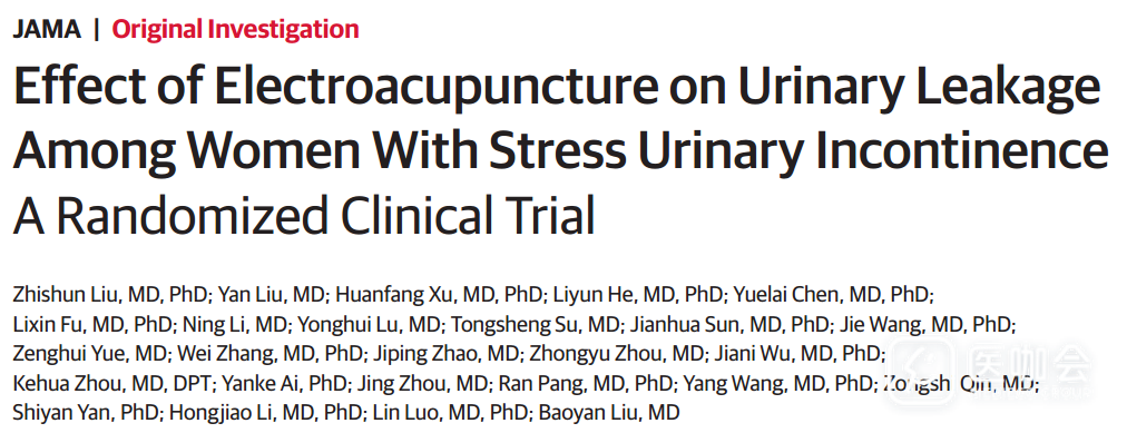 该研究通讯作者为中国中医科学院首席研究员刘保延,第一作者为广安门医院主任医师刘志顺,国内12家医院参与完成。研究目的是为了评估电针治疗压力性尿失禁(SUI)女性患者的疗效[1]。