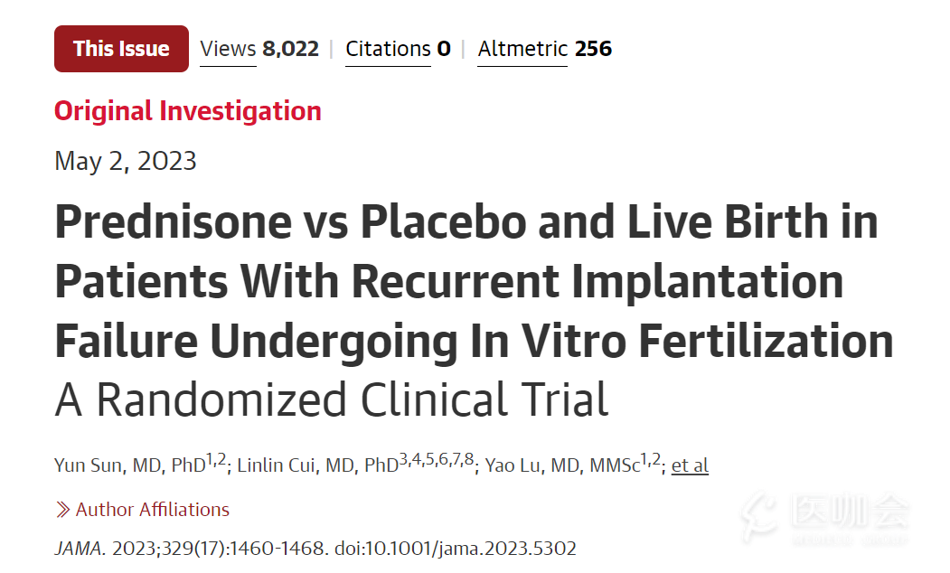 JAMA:接受体外受精的复发性种植失败患者中泼尼松与安慰剂和活产的比较:一项随机临床试验