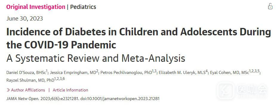 该研究于2023年6月30日发表在《JAMA Network Open》[1],汇集了17项研究数据,发现在2020年(COVID-19疫情第一年),19岁以下儿童和青少年1型糖尿病的发病率比2019年增加了约14%;在COVID-19第二年,发病率继续增加,比2019年增加了27%。