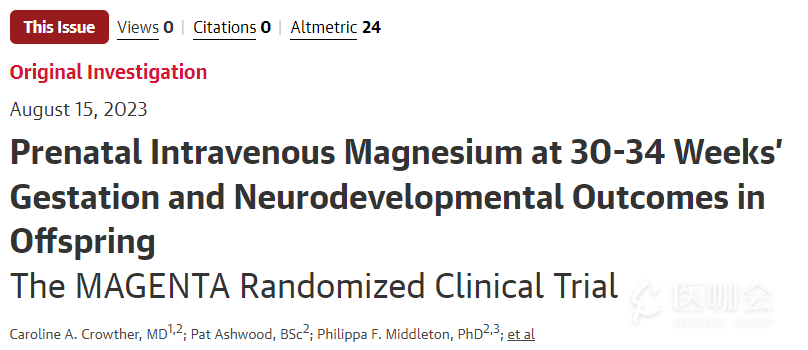 JAMA:妊娠30-34周的产前静脉注射镁与后代神经发育结局