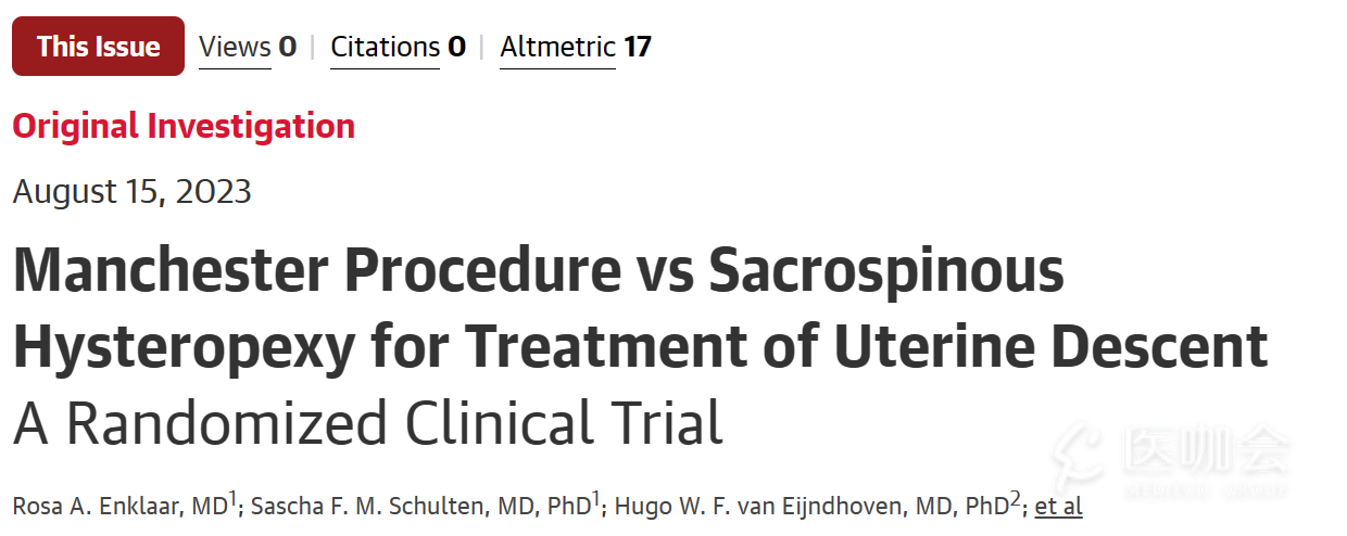 JAMA:曼彻斯特手术与阴道骶骨固定术治疗子宫脱垂的随机临床试验
