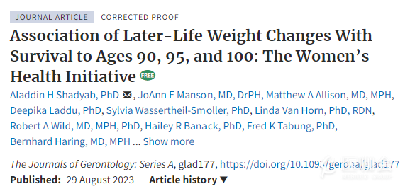 随着年龄的增长,体重变化与死亡率之间的关联可能存在差异。2023年8月29日,《The Journals of Gerontology》期刊(IF=5.1)发表了一项研究结果,探究在老年女性中,短期(3年)和长期(10年)的体重变化与生存率的关联。结果显示,与体重保持稳定相比,体重减轻与寿命更短相关。