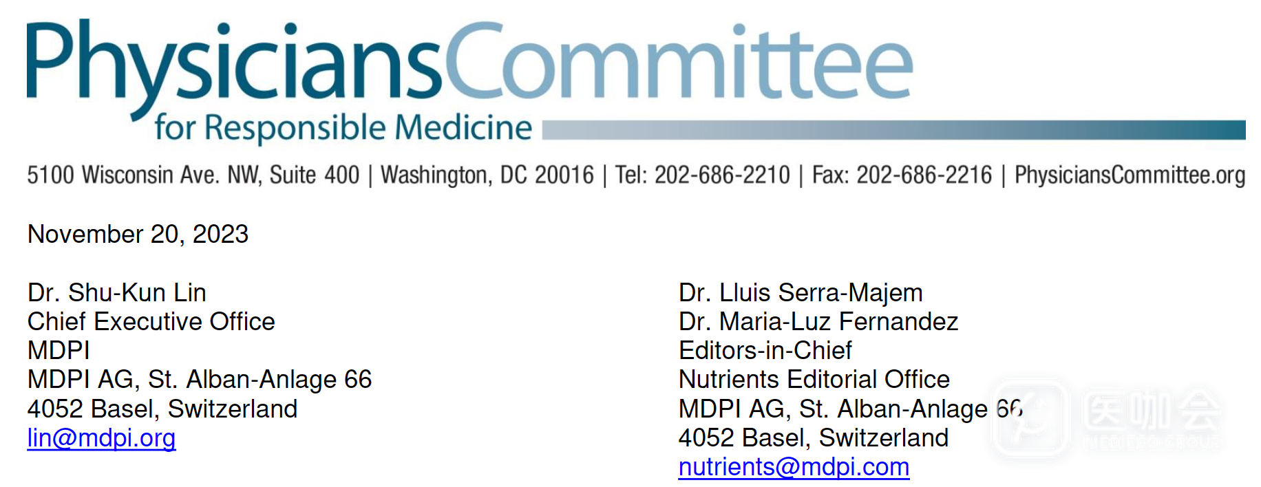 图. 发给MDPI和《Nutrients》编辑的抵制信