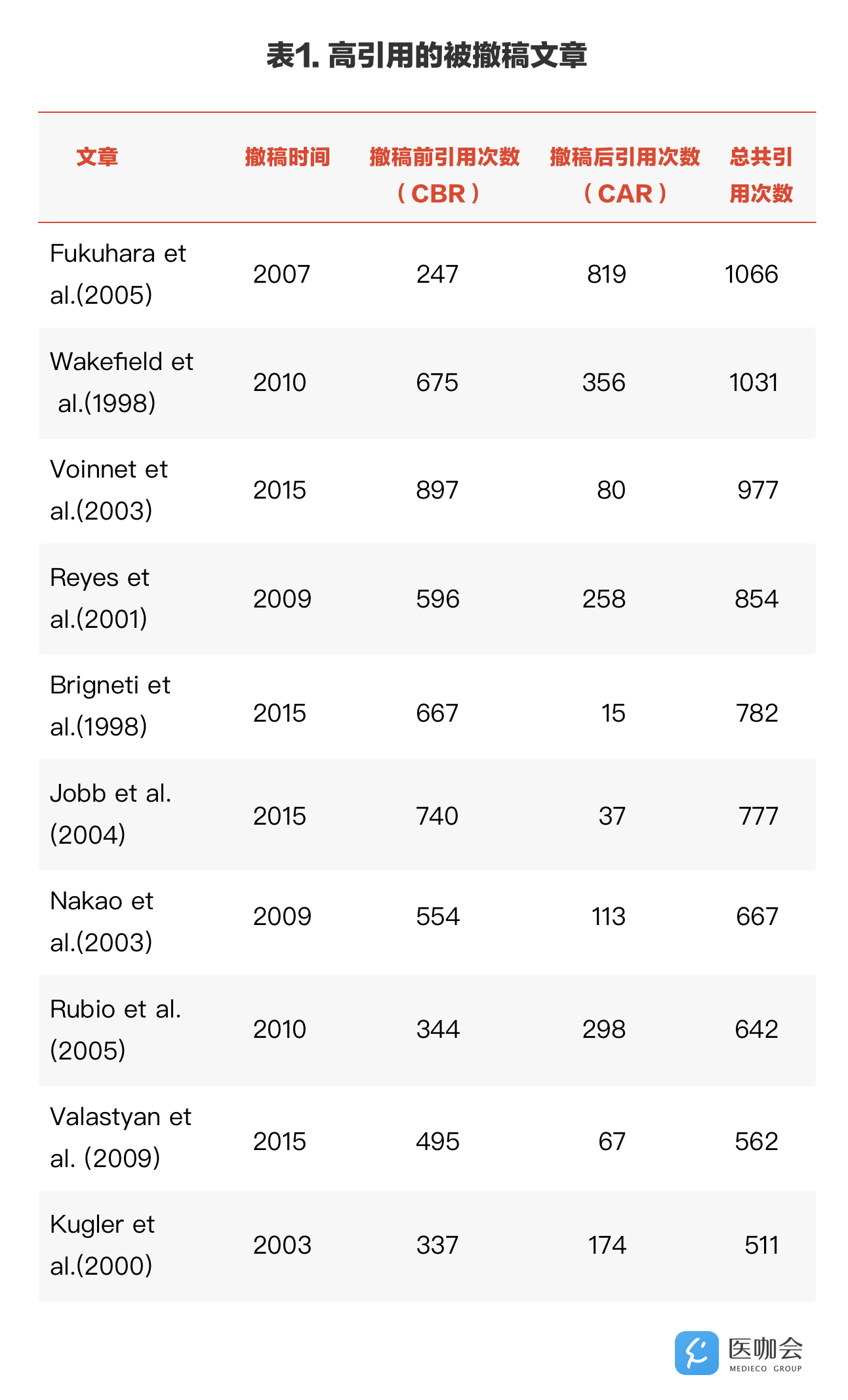 最近,小咖还读到一篇文章,题目为“Highly cited retracted papers”[4],发现很多文章被撤稿后,依然被多次引用,例如一篇文章在2007年被撤稿,之后又被引用了800多次。接下来,我们一起来看看这些撤稿后依然被引用多次的文章吧。