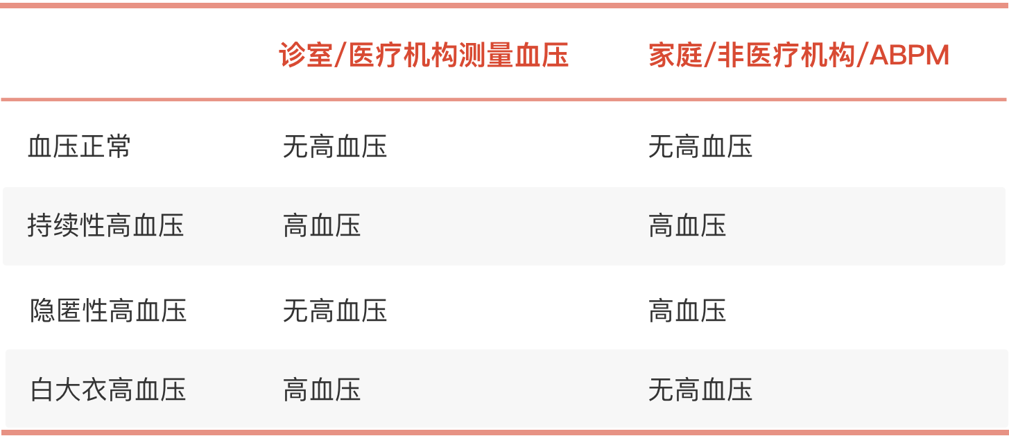 高血压的测量1. 诊室血压的准确测量为了高血压的诊断和管理,推荐合适的方法来准确测量和记录血压。(测量血压的关键步骤清单详见原文的表8)2. 诊室外血压测量以及自我监测推荐进行诊室外血压测量以确认高血压的诊断,并可用于调整降压药的使用。3. 隐匿性高血压和白大衣高血压·对于未经治疗、SBP超过130mm Hg但低于160mm Hg,或者DBP超过80mmHg但低于100mm Hg的成人,在下高血压诊断前通过日间ABPM(动态血压监测)或HBPM(家庭自测血压)来筛查是否存在白大衣高血压,是合理的。·针对有白大衣高血压的成人,定期通过ABPM或HBPM进行监测,以检测是否转为持续性高血压,是合理的。·对于正在治疗的高血压患者,诊室血压读数未达标,HBPM读数提示存在明显的白大衣效应,使用ABPM可有助于确认。·诊室血压测量中,未经治疗的SBP始终在120-129mm Hg,或者DBP始终在75-79mm Hg的成人,使用HBPM或ABPM来筛查隐匿性高血压是合理的。·对于使用多种药物治疗高血压的患者,诊室血压超过目标值10mm Hg以内,通过HBPM(或ABPM)来筛查是否存在白大衣效应,可能是合理的。·正在接受高血压治疗的患者,诊室血压读数达标,如果患者存在靶器官损害或者整体CVD风险增加,使用HBPM来筛查是否存在隐匿性未治愈高血压,可能是合理的。·正在接受高血压治疗的患者,HBPM读数升高,提示存在隐匿性未治愈高血压的可能,在强化降压药物治疗之前,使用ABPM进行确诊可能是合理的。