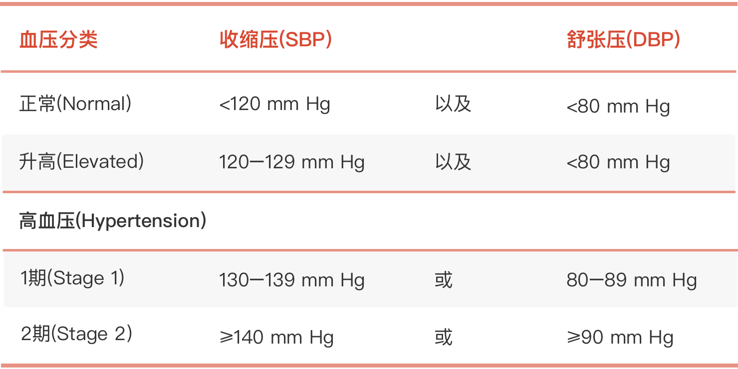 以下为指南的推荐要点整理。高血压的定义血压应被分类为:血压正常、血压升高、1期或2期高血压,用以预防和治疗高血压。