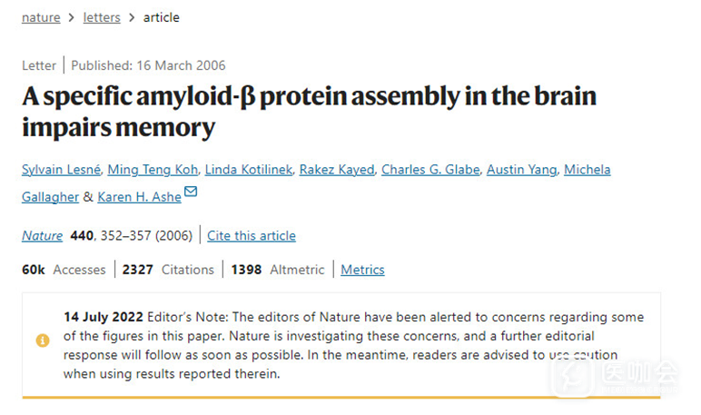 Nature阿尔茨海默病里程碑研究或将撤稿,已被引用近2500次