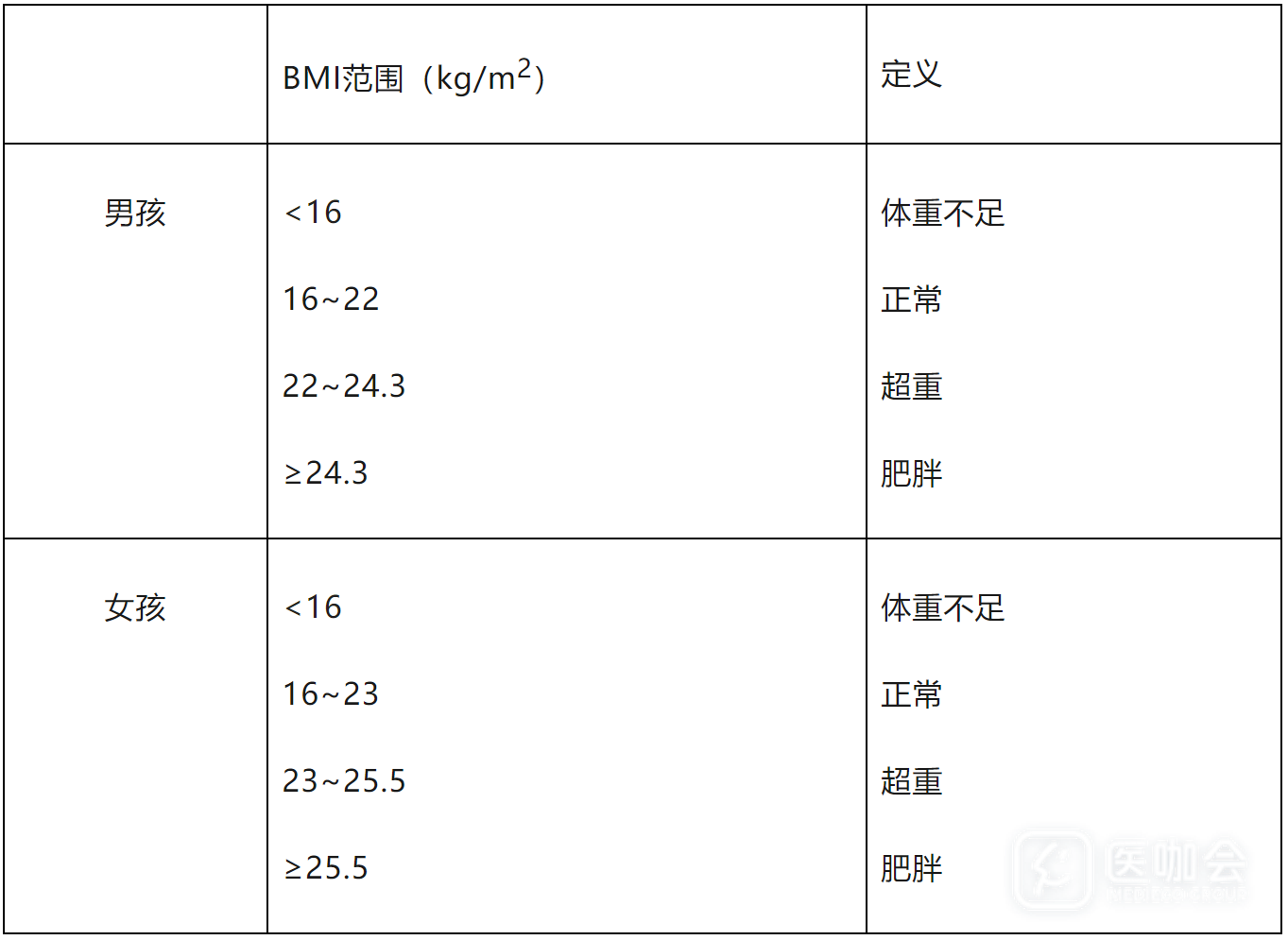 在14岁时,男孩和女孩的BMI范围定义如下: