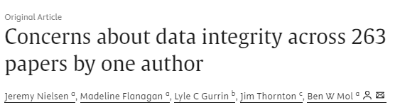 2024年5月,澳大利亚妇产科医生Ben Mol等人在《Journal of Gynecology Obstetrics and Human Reproduction》上发表了一篇论文[1],指出130篇论文存在数据完整性问题。这些研究均由埃及妇产科医生Ahmed Abbas撰写,这些论文中Abbas通常担任合著者或通讯作者。