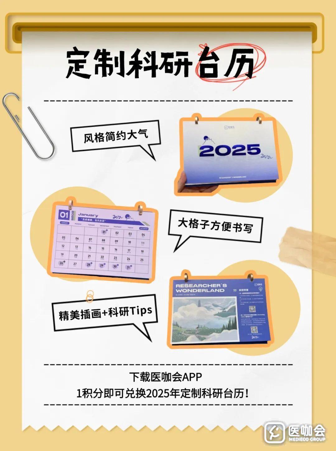2、完成职业认证的用户,在医咖会APP用1积分即可兑换2025年医咖会科研台历(数量有限,先到先得!)