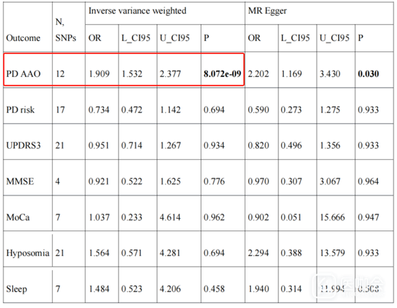 研究发现,咖啡摄入与帕金森病发病年龄延迟之间存在显著的因果关联。在排除了16个多效性基因变异后,剩余的12个单核苷酸多态性(SNP)分析显示,咖啡摄入与帕金森病发病年龄延迟有强相关性(OR=1.909)。这意味着更高的咖啡摄入量可能与帕金森病发病年龄的延迟有关。