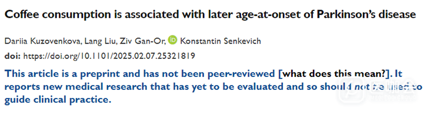 咖啡摄入可能延迟帕金森的发病年龄,但不影响疾病风险或进展