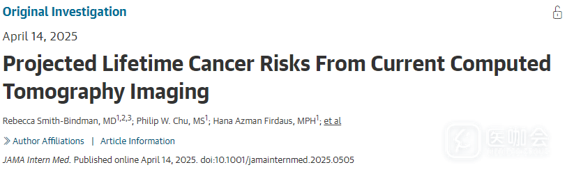 2025年4月14日,《JAMA内科学》(IF=22.5)发表了一项研究,旨在基于2023年美国最新数据,重新评估当前CT使用对癌症风险的潜在影响。结果显示,在2023年接受CT扫描的数百万人中,预计约10.3万人会在他们的一生中患上癌症。如果这种状况持续下去,与CT相关的癌症最终可能占每年新诊断癌症总数的5%。