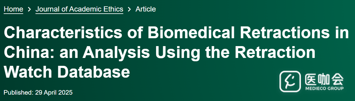 本文整理自:Wang, Y., Li, X., Cai, H. et al. Characteristics of Biomedical Retractions in China: an Analysis Using the Retraction Watch Database. J Acad Ethics (2025). https://doi.org/10.1007/s10805-025-09635-x