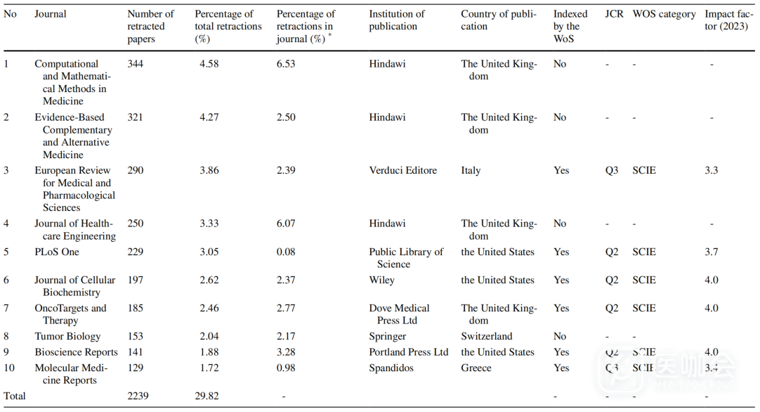 我国生物医学领域10多年来被撤稿7000多篇,来看TOP10撤稿期刊!