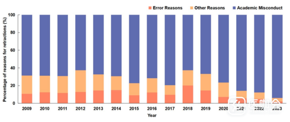 2025年4月29日,《Journal of Academic Ethics》发表了一项研究,基于Retraction Watch和Web of Science数据库,对2009-2023年中国生物医学领域的撤稿情况进行了系统分析。