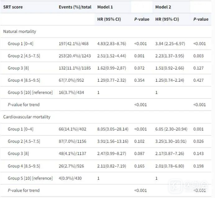 表.SRT评分与自然死亡率、心血管疾病死亡率的关联