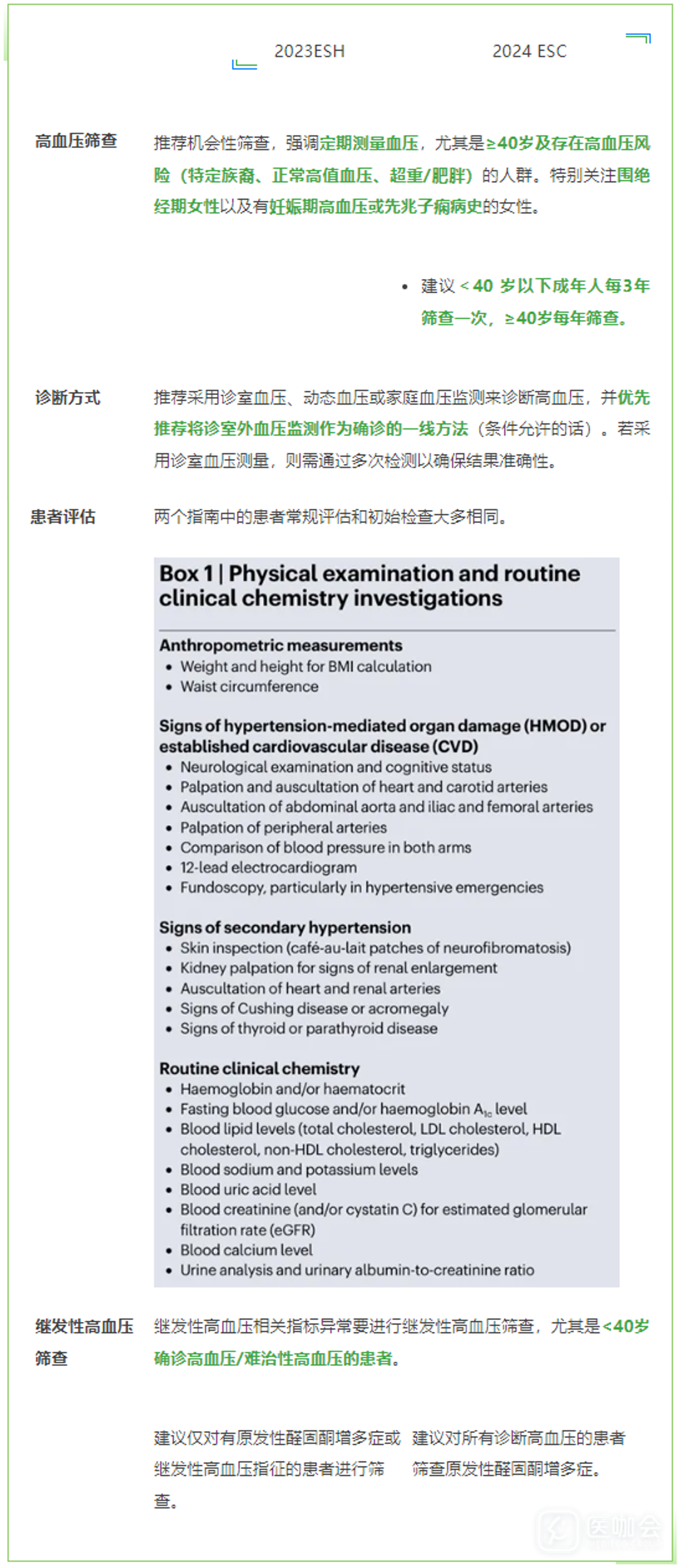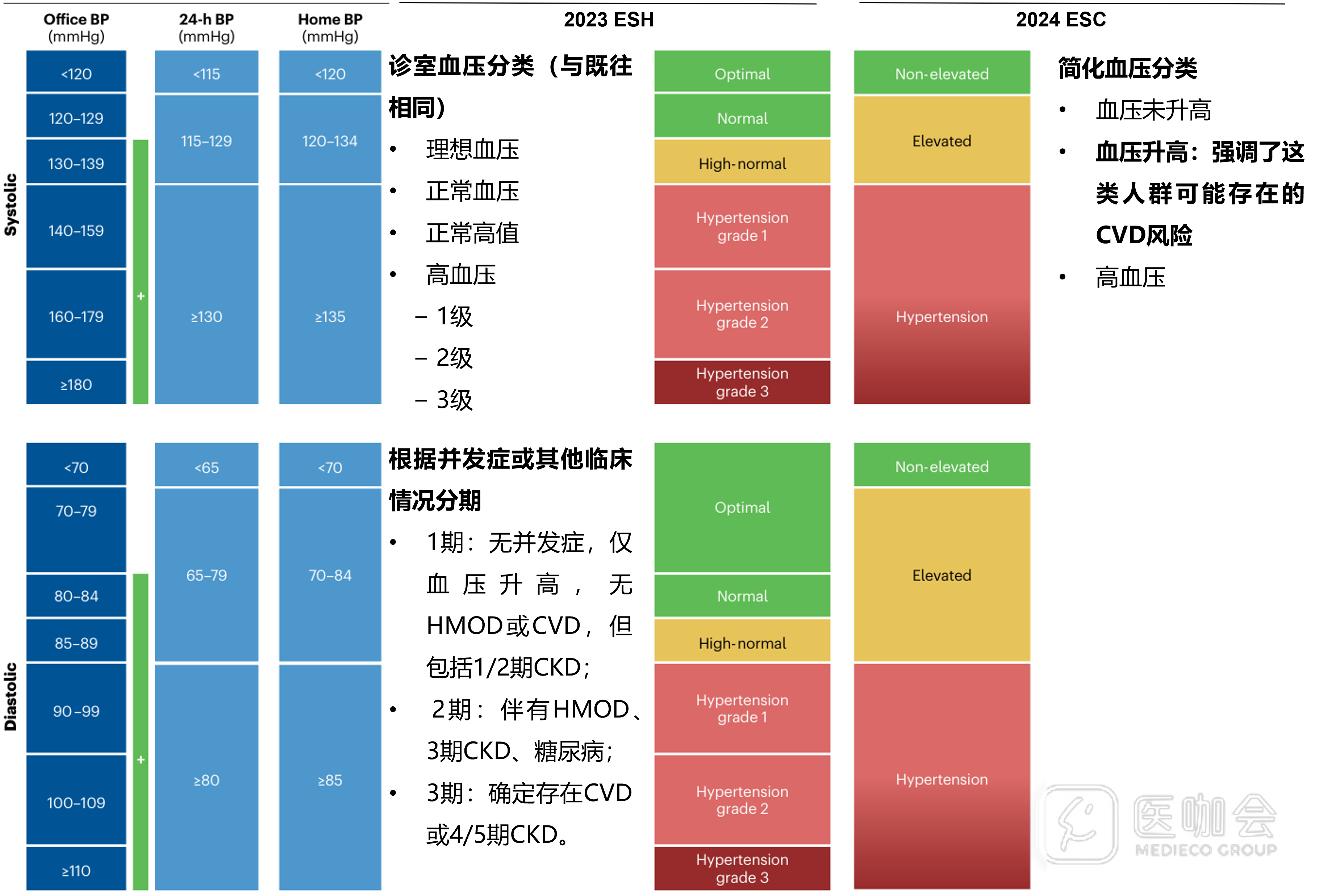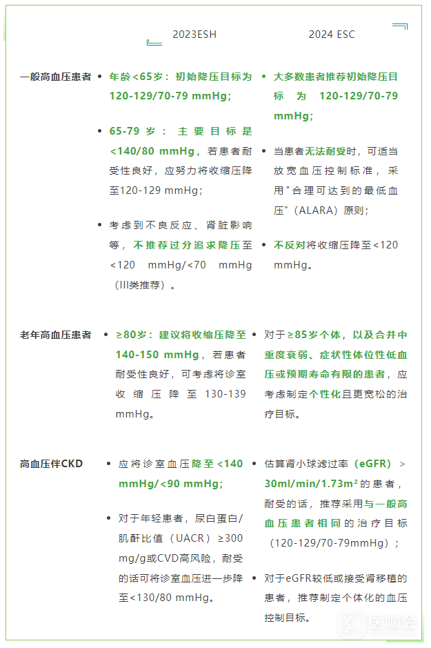 多图表总结:ESH和ESC两大高血压指南的异同