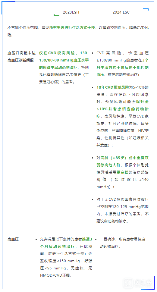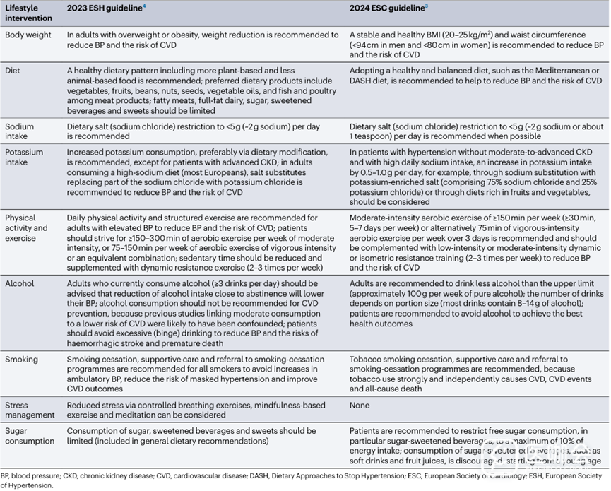 表. 2023 ESH和2024 ESC高血压指南对生活方式干预的比较