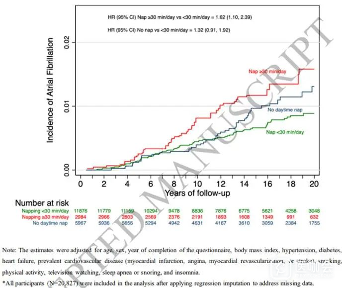 前瞻性队列研究:午睡时间过长、夜间睡眠过短/过长或增加房颤风险