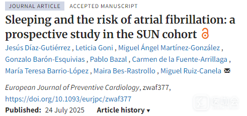 2025年7月24日,《European Journal of Preventive Cardiology》(IF=7.5)发表了一项队列研究的成果,探讨了午睡和夜间睡眠时长对房颤风险的影响,研究显示:午睡时间过长、夜间睡眠时间过短/过长,与房颤风险增加显著相关。