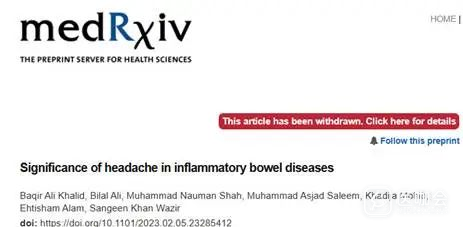 在Google Scholar中检索扭曲短语“provocative gut illnesses”(常用来替代“炎症性肠病”,IBD),博客作者在medRxiv预印本库中发现了一篇“宝藏文章”:Baqir Ali Khalid等人所著的《Significance of headache in inflammatory bowel diseases》[2],最初于2023年2月上传至medRxiv。七名作者来自巴基斯坦的五所大学和医学院。