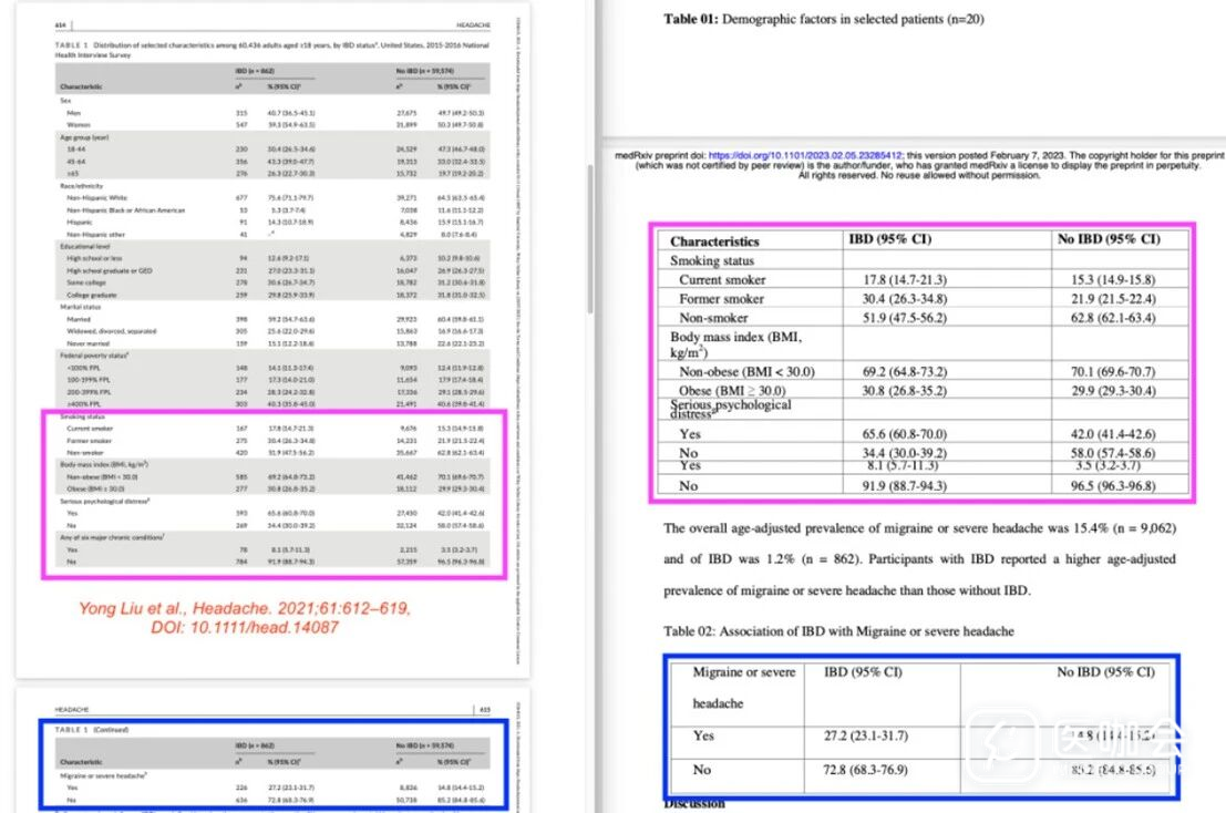 左:2021年《Headache》的原文;右:2023年medRxiv预印本