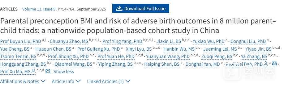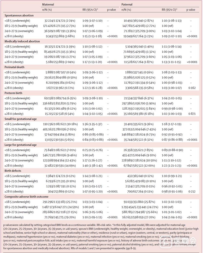 中国大规模队列研究发文柳叶刀子刊:双亲BMI均会影响孩子出生结局