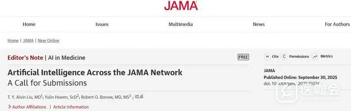 2025年9月30日,JAMA在线发表了一篇文章,呼吁作者投稿人工智能(AI)相关稿件。