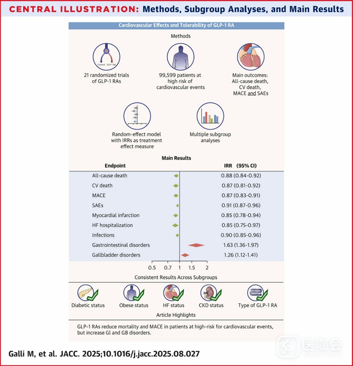 JACC发表迄今最全面Meta分析:探讨GLP-1RAs在不同人群中的心血管效应和安全性(IF=22.3)