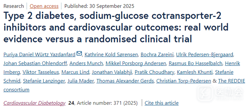 2025年9月30日,《Cardiovascular Diabetology》(IF=10.6)发表了一篇模拟目标试验,在真实世界中评估了SGLT2i治疗2型糖尿病合并心血管疾病患者的疗效。研究显示:真实世界中,与DPP4i相比,该患者群体持续使用SGLT2i能够有效降低主要不良心血管事件、心衰住院、心血管疾病死亡及全因死亡的发生风险;SGLT2i在真实世界人群中的绝对获益大于临床试验中意向性治疗分析的估计值。