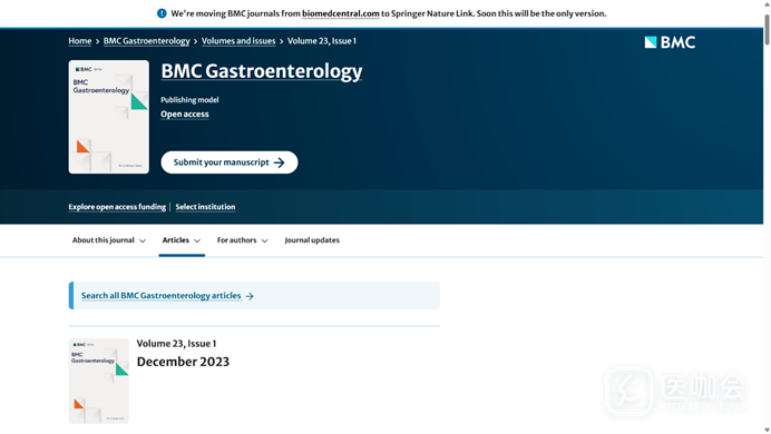图1 BMC Gastroenterology在2023年发表的论文收录于第23卷。