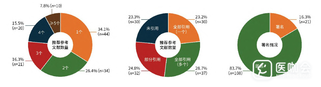 51.9%的审稿报告推荐的文献被作者“照单全收”,全部引用(其中23.2%为审稿人仅推荐了1个文献,28.7%推荐了不止1个),24.8%的审稿报告推荐的文献被部分引用,仅23.3%的审稿报告推荐的文献完全未被引用。