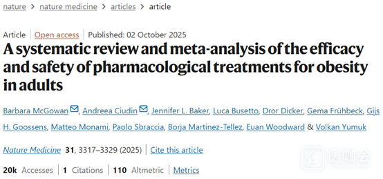 Nature Medicine发表Meta分析:不同减肥药物的疗效和安全性