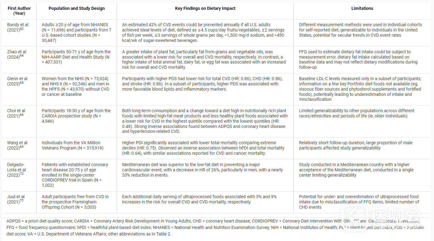 表.前瞻性队列研究与随机对照试验证据:天然植物性食物为主的饮食模式对CVD预防具有积极作用