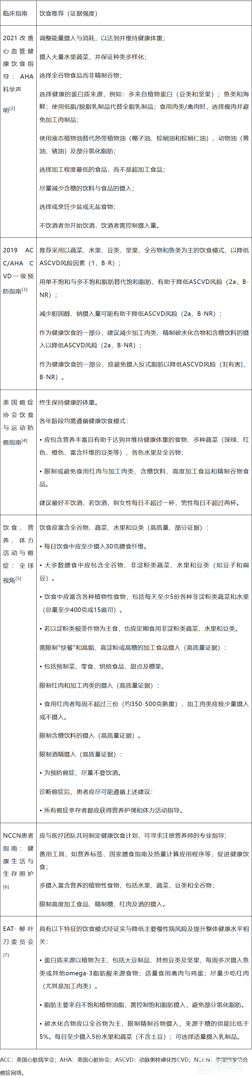 表. 心血管疾病与肿瘤患者相关饮食指南及营养建议总结