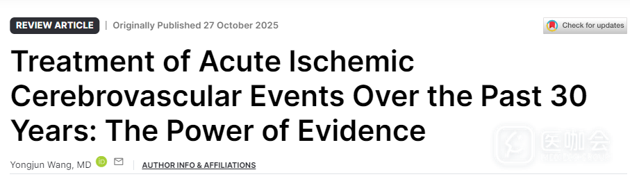 本文整理自《Stroke》期刊2025年10月27日在线发表的一篇综述,标题为“Treatment of Acute Ischemic Cerebrovascular Events Over the Past 30 Years: The Power of Evidence”,作者为北京天坛医院的王拥军教授。