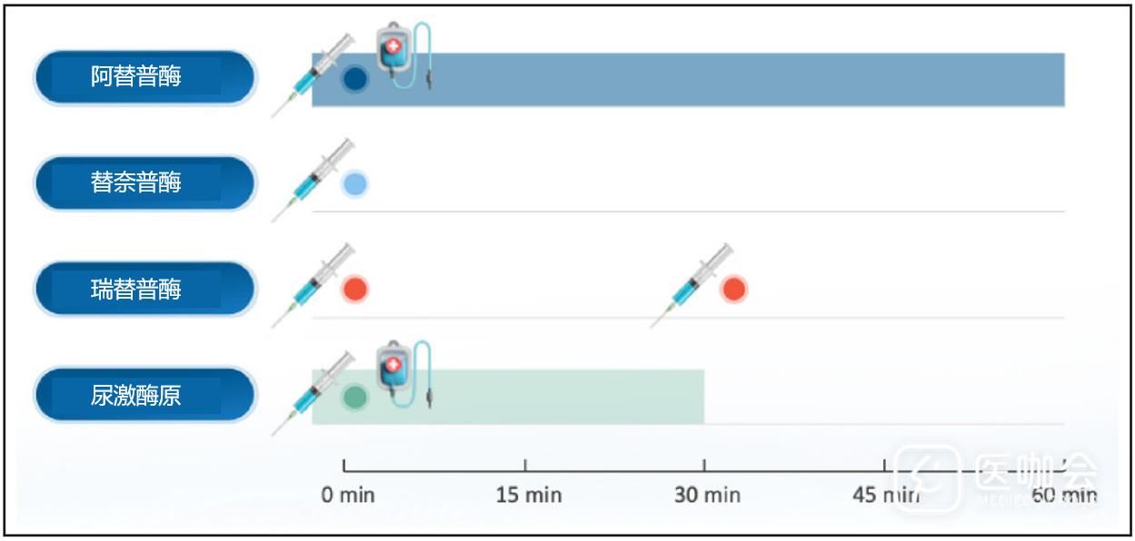总体而言,缺血性卒中静脉溶栓药物的选择已很丰富。目前用于缺血性卒中的四种静脉溶栓药物:阿替普酶、替奈普酶、瑞替普酶和尿激酶,在证据基础、给药方式和安全性方面存在差异(图1)。