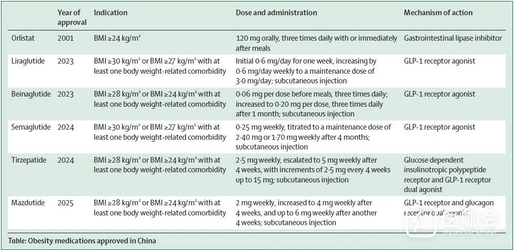 基于临床证据,继奥利司他于2001年首次获批用于治疗肥胖后,中国已新增批准五种GLP-1受体激动剂:包括利拉鲁肽、贝那鲁肽、司美格鲁肽、替尔泊肽、玛仕度肽。此外,埃诺格鲁肽的申请已提交至国家药品监督管理局。