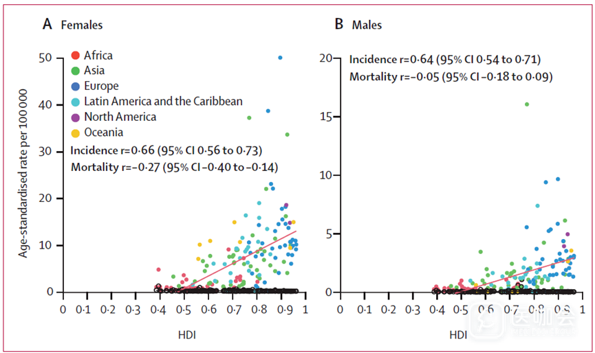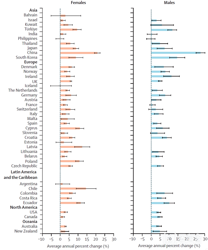 柳叶刀子刊发表的这项研究,分析了AYAs甲状腺癌发病率和死亡率的趋势,并对比了不同地区的差异。