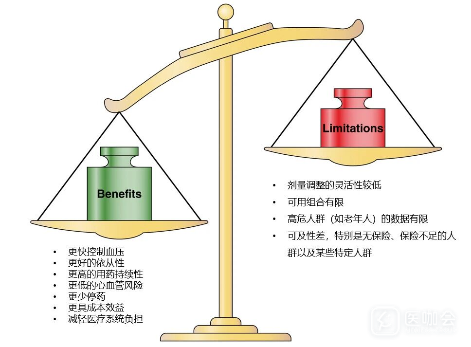 图2. 高血压管理中单片复方制剂的益处与局限性