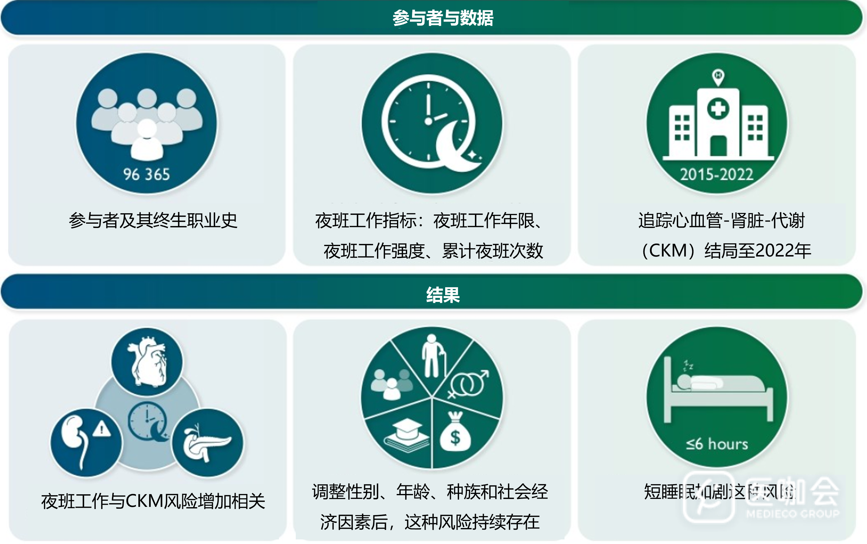 - 首个通过约10万人完成的全面职业史问卷,探讨夜班工作多维度特征与CKM风险关联的研究。