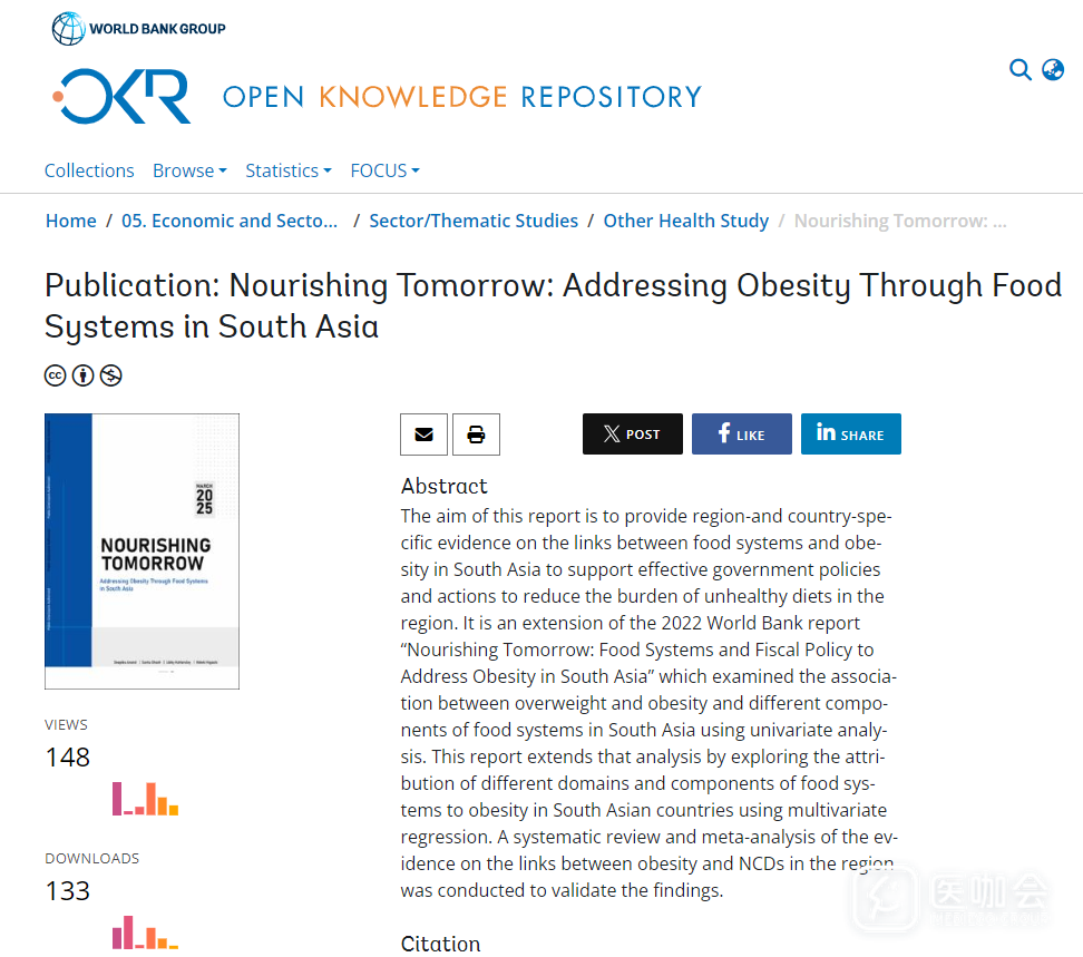 这份报告题为《滋养未来:通过粮食系统应对南亚肥胖问题》,于2025年3月发表在世界银行开放知识库中,分析了不同粮食体系对南亚国家肥胖率上升的影响。四名作者中有三人为世界银行的员工。