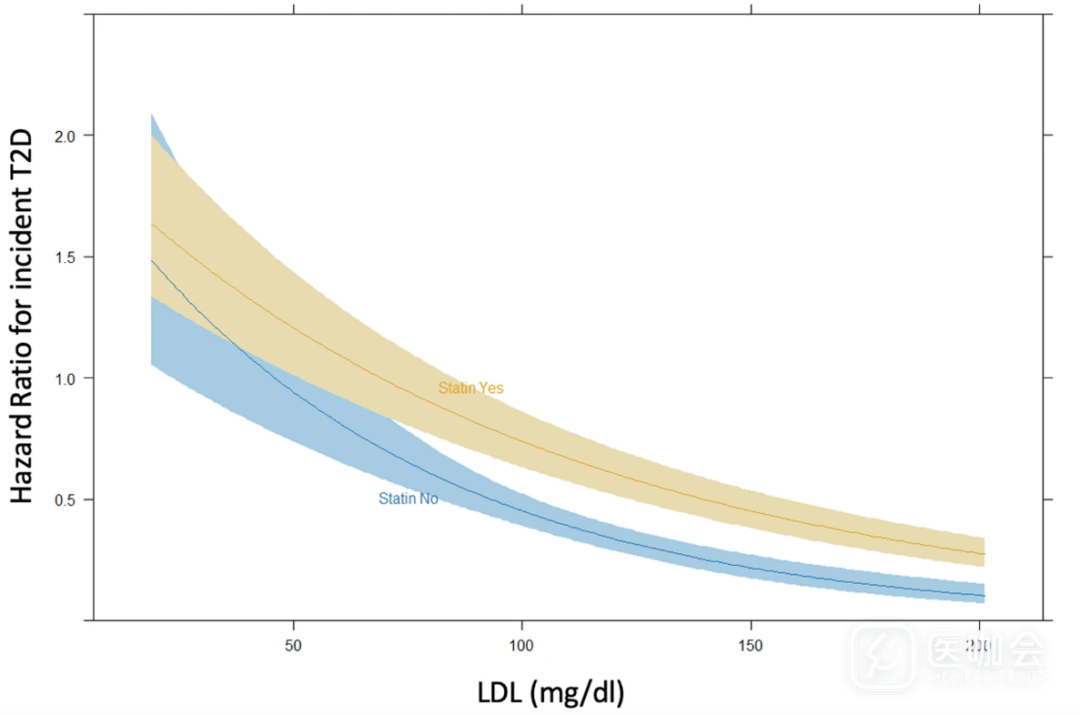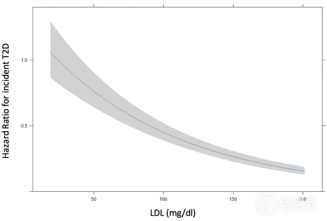 图.调整年龄、性别、BMI、血糖、肌酐和高血压后,LDL-C水平和T2D发病风险的关联