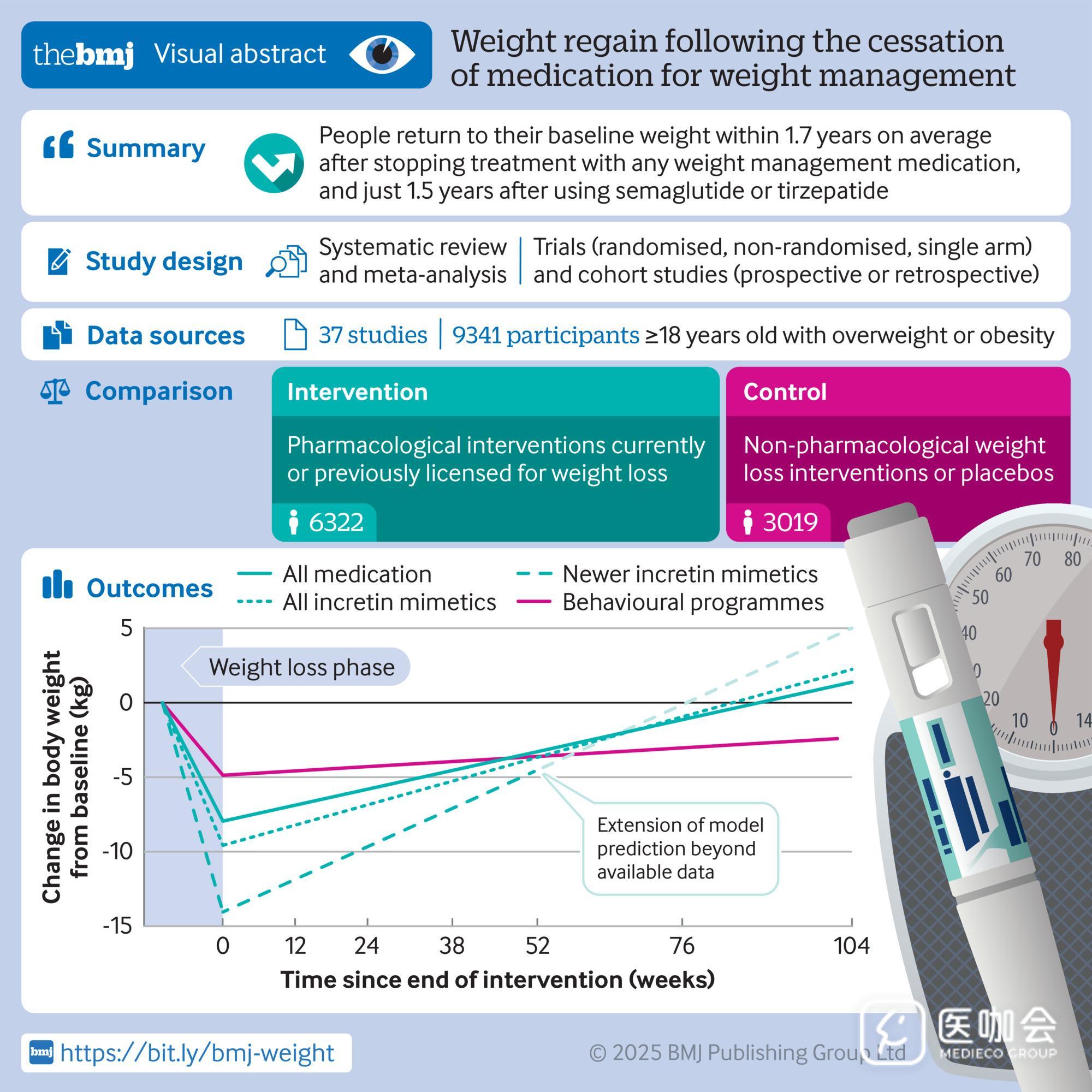BMJ发Meta分析:停用减肥药后的体重反弹