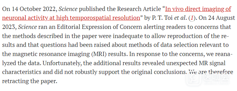2025年9月,作者撤回了2022年发表于《Science》的一篇备受争议的文章,该文章结果显示功能性磁共振成像(fMRI)可用来测量神经元活动。