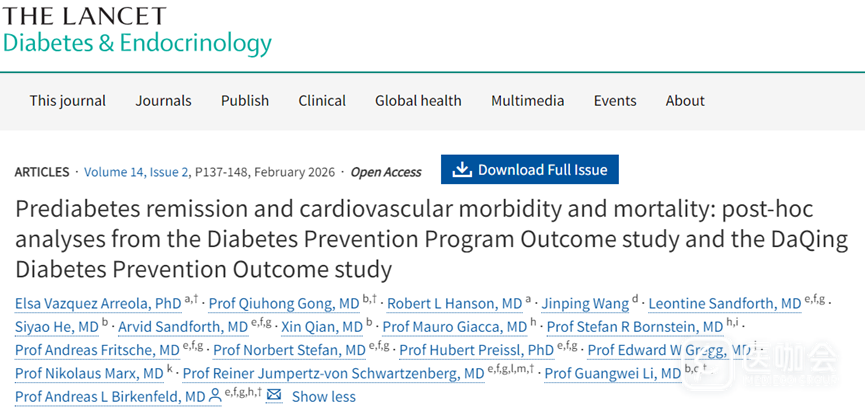 2025年12月,《Lancet Diabetes & Endocrinology》在线发表了一项事后分析的结果,这项研究由中国医学科学院阜外医院李光伟教授、巩秋红教授等携手德国图宾根大学医院Andreas L Birkenfeld教授等联合开展。本研究使用了两项大型研究的数据:中国大庆糖尿病预防结局研究(DaQingDPOS)和美国糖尿病预防结局研究(DPPOS),以评估达到糖尿病前期缓解对心血管死亡或心衰住院的影响。