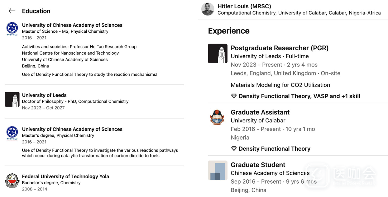 之前,Hitler Louis社交平台上的个人资料显示其为英国利兹大学的在读博士,预计2027年10月毕业。但在两篇论文的撤稿声明中,Hitler Louis要求撤下该所属机构信息。一份声明称“文章中描述的研究与该机构无关”,另一份则称“错误提供”了机构信息。对于确认其在读情况的询问,该校未予以回应。