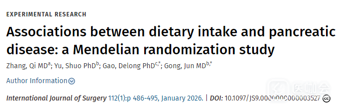孟德尔随机化研究:饮食与胰腺疾病的因果关联(IF=10.1)